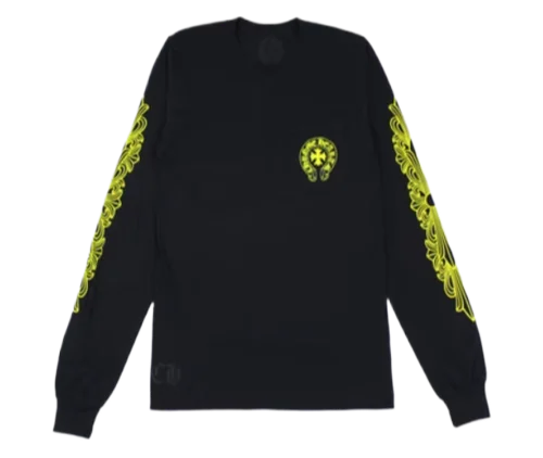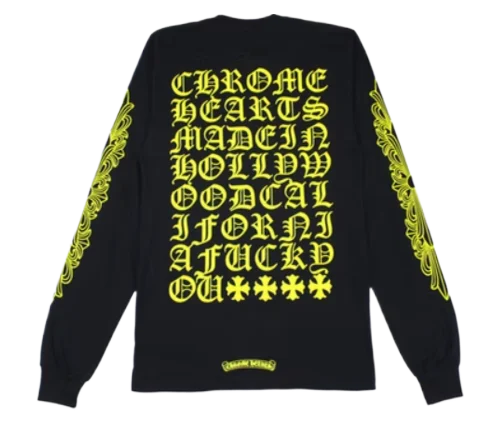 The Bold Yellow Chrome Hearts Made In Hollywood Long Sleeve Shirt is the perfect way to add a pop of color and exclusivity to your wardrobe. With its vibrant yellow shade and iconic branding, it’s a luxurious and statement-making piece for those who appreciate both bold design and high-end fashion.