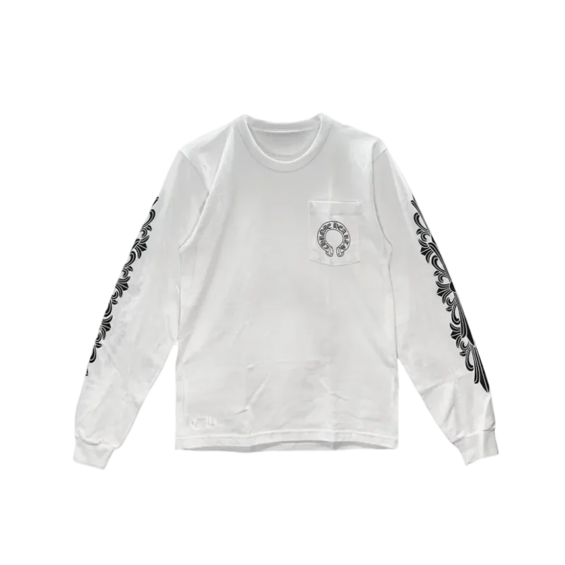 The CH Classic Horseshoe Logo Long Sleeve T-Shirt is a timeless piece that captures the essence of Chrome Hearts’ rebellious yet luxurious streetwear style. Crafted from soft, high-quality cotton, this long sleeve t-shirt features the brand’s iconic horseshoe logo in a minimalist design, offering a clean and bold look. Perfect for layering or wearing on its own, this versatile piece combines premium craftsmanship with signature branding, making it an essential addition to any streetwear collection.