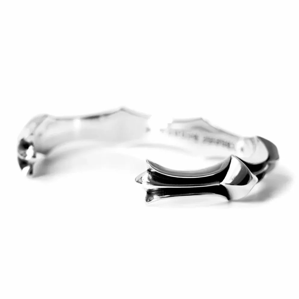 You can feel the weight of this large Gem Stud cuff, as it gives off a powerful and substantial presence. Each stud that protrudes out of the cuff makes the whole piece pierce out with lustrous three-dimensionality. This ultimate badass silver piece tells those around you that you answer to nobody.