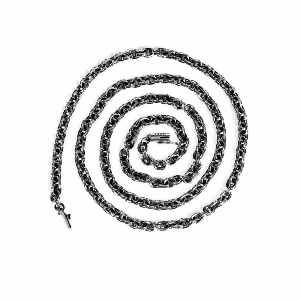 Each individual link has been skillfully engraved with the Chrome Hearts logo. This adds an instant modern touch without compromising on the luxury feel this jewelry is renowned for. This sterling silver Chrome Hearts chain was designed to drape perfectly – delivering an elegant “U” shape look, the ultimate finishing touch to your outfit. Suitable for both men and women.