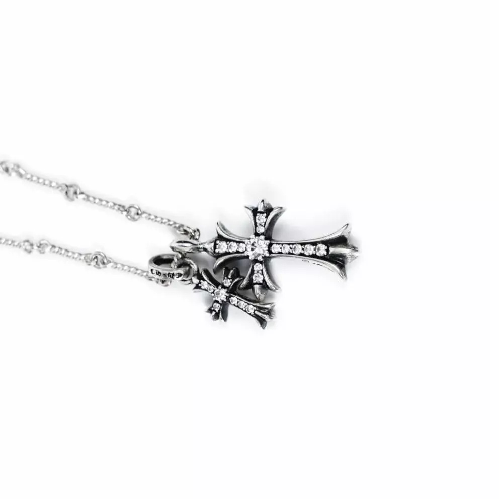 Introducing Chrome Heart’s exquisite 925 Sterling Silver Small Cross and Babyfat Charm Necklace with Diamonds, a true embodiment of elegance and style. Crafted with meticulous attention to detail, this stunning piece showcases a delicate cross pendant adorned with shimmering diamonds, beautifully complemented by a Babyfat charm.