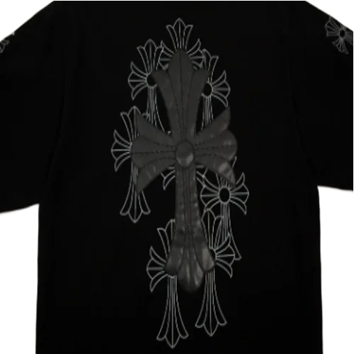 - Luxury Streetwear Appeal: With its combination of high-quality cotton and luxurious leather detailing, this t-shirt embodies the fusion of streetwear and high fashion that Chrome Hearts is renowned for.