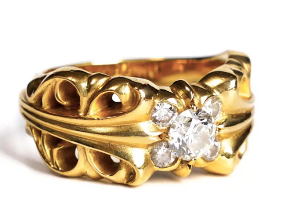 Be the first to review “CHROME HEARTS 22K GOLD DOUBLE FLORAL RING WITH 5 DIAMONDS”