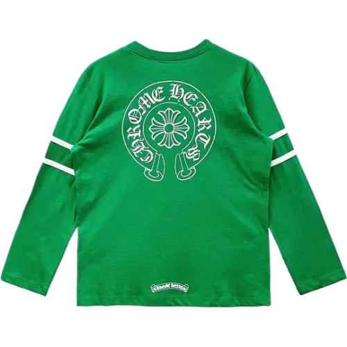 The Chrome Hearts 33 Horseshoe Logo Green Long Sleeves Tee is a perfect combination of luxury, comfort, and exclusive design. Its striking green hue and iconic Horseshoe logo make it a must-have for those who want to elevate their streetwear game with a bold and unique piece.