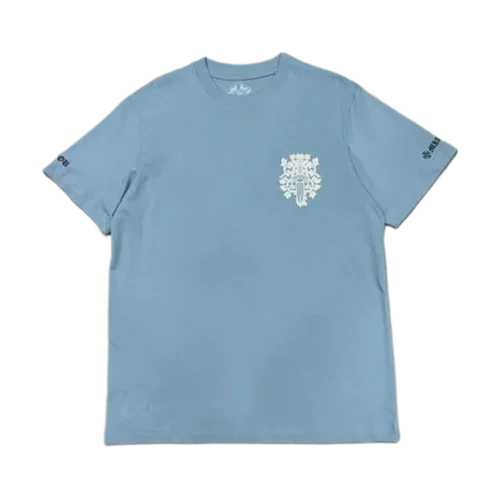 - Soft Baby Blue Color: The t-shirt comes in a fresh, pastel baby blue color, adding a softer, yet vibrant touch to the classic Chrome Hearts design, making it a versatile piece for various outfits.
