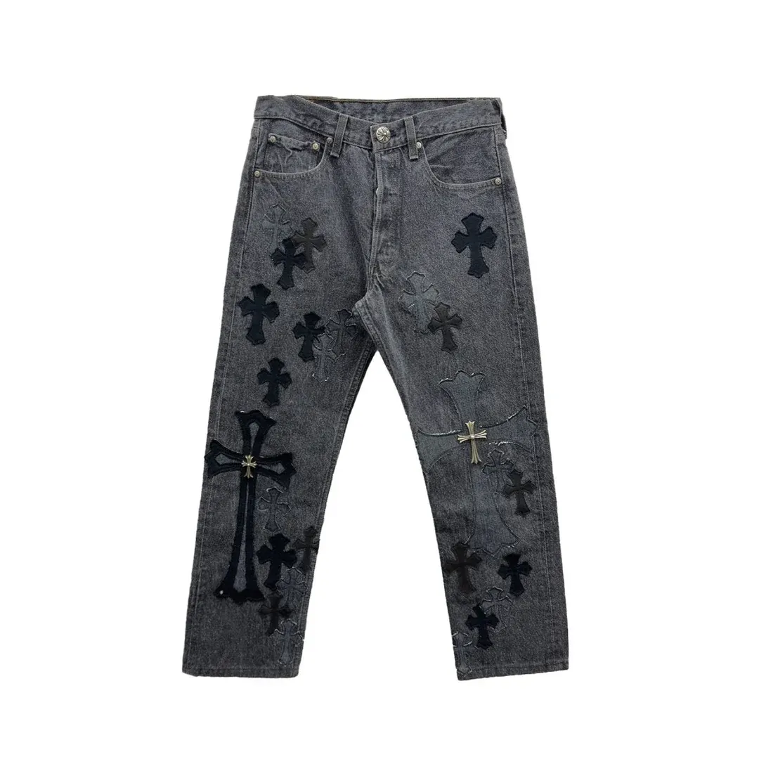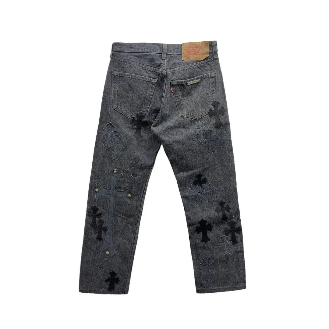 Chrome Hearts Black & Grey Silver Cross Patch Jeans
