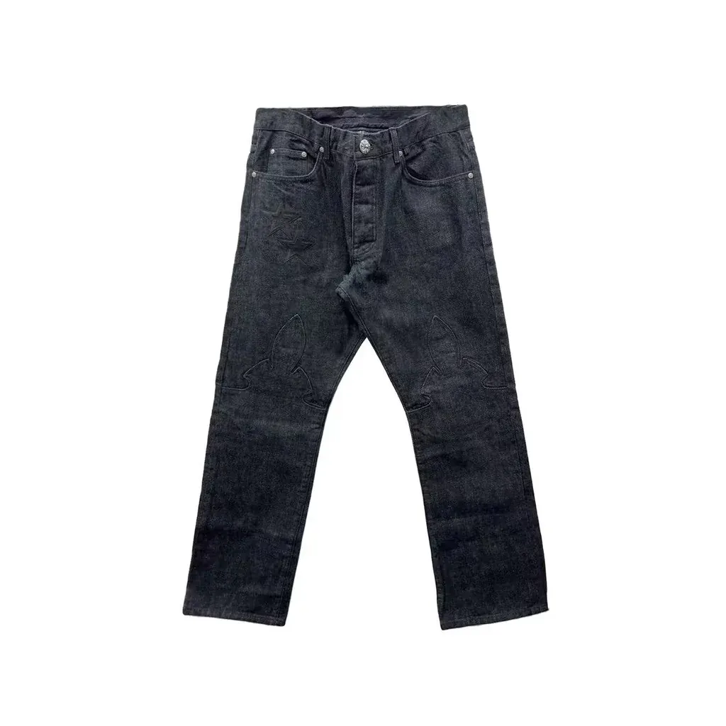 The Chrome Hearts Black Star Patch Flame Knee Cargo Pants combine utilitarian design with luxury streetwear elements, offering a bold and unique statement piece. Made from durable black fabric, these cargo pants feature flame knee patches and star patches, adding a fiery, rebellious flair to the design. The multiple cargo pockets offer style and functionality, while the flames and stars provide an edgy twist. Crafted with Chrome Hearts’ signature attention to detail, these pants deliver comfort and style in one, making them perfect for those who want to stand out with both practicality and fashion.