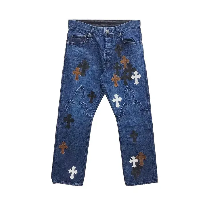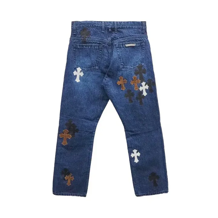 Be the first to review “Chrome Hearts Black & White & Brown Patch Flame Knee Jeans”