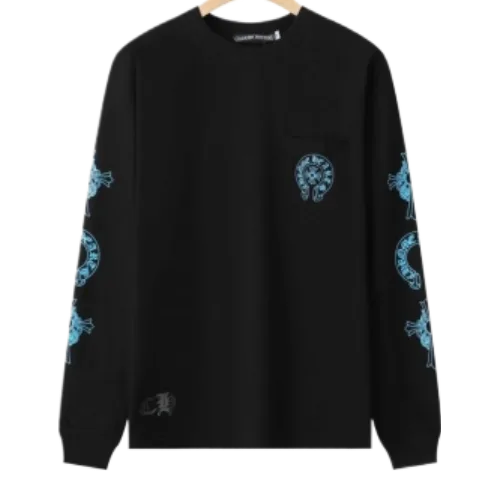 Make a statement and elevate your wardrobe with the Chrome Hearts Blue Cross Floral Black Long Sleeve T-Shirt, a unique piece that blends signature Chrome Hearts elements with artistic, high-end design.