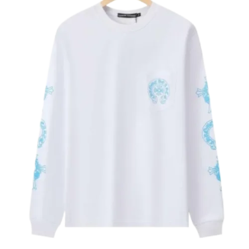 Add a touch of artistry and luxury to your wardrobe with the Chrome Hearts Blue Cross Floral Sleeve Long Sleeve T-Shirt, a perfect fusion of high-end streetwear and unique, eye-catching design.