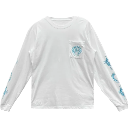 The Chrome Hearts Blue Cross Floral White Long Sleeve T-Shirt is a unique blend of luxury and artistic design, featuring the iconic Chrome Hearts cross and a vibrant floral pattern, set against a crisp white base. This long sleeve tee combines elegance with streetwear edge, making it a standout piece in any wardrobe.