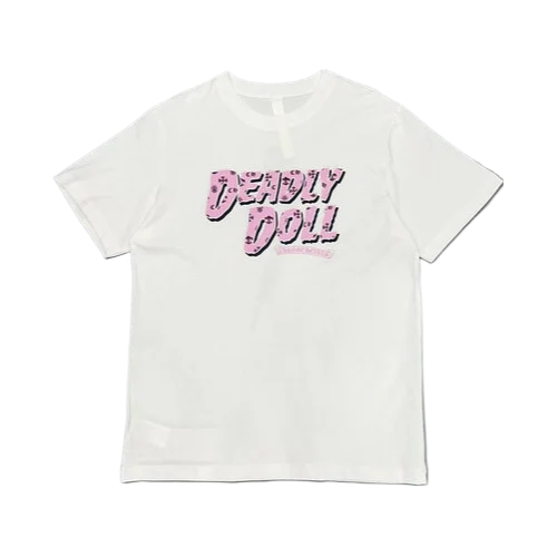 - Bold, Intricate Design: The cemetery crosses and Deadly Doll graphic are intricately detailed, creating a striking visual contrast against the crisp white fabric, making this tee a standout piece in any collection.
