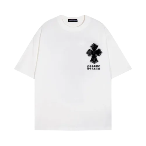 Be the first to review “Chrome Hearts Embroidery Leather Cross Patch T-Shirt White”