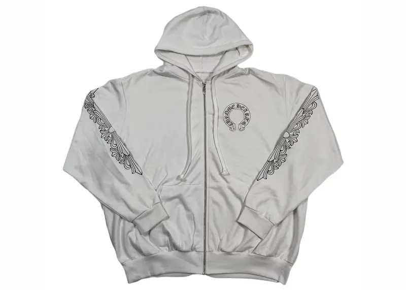 Elevate your streetwear game with the Chrome Hearts Horseshoe Floral Zip-Up Hoodie in sleek white. Designed with the brand’s signature craftsmanship, this hoodie combines premium comfort and bold aesthetics.