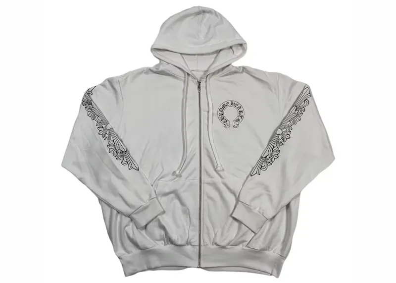Chrome Hearts Horseshoe Floral Zip Up Hoodie White