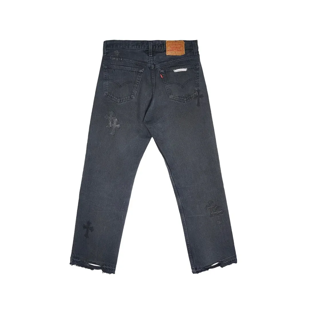 Chrome Hearts Levi’s 501 Black Cross Patch Grey Jeans
