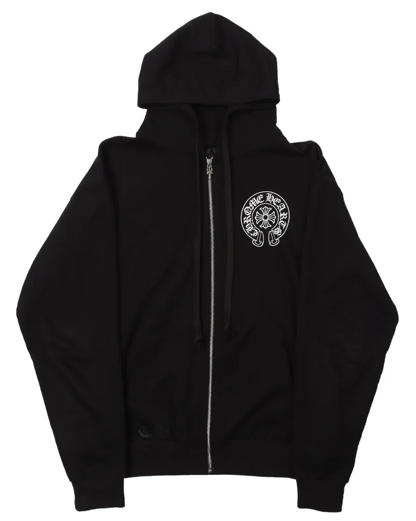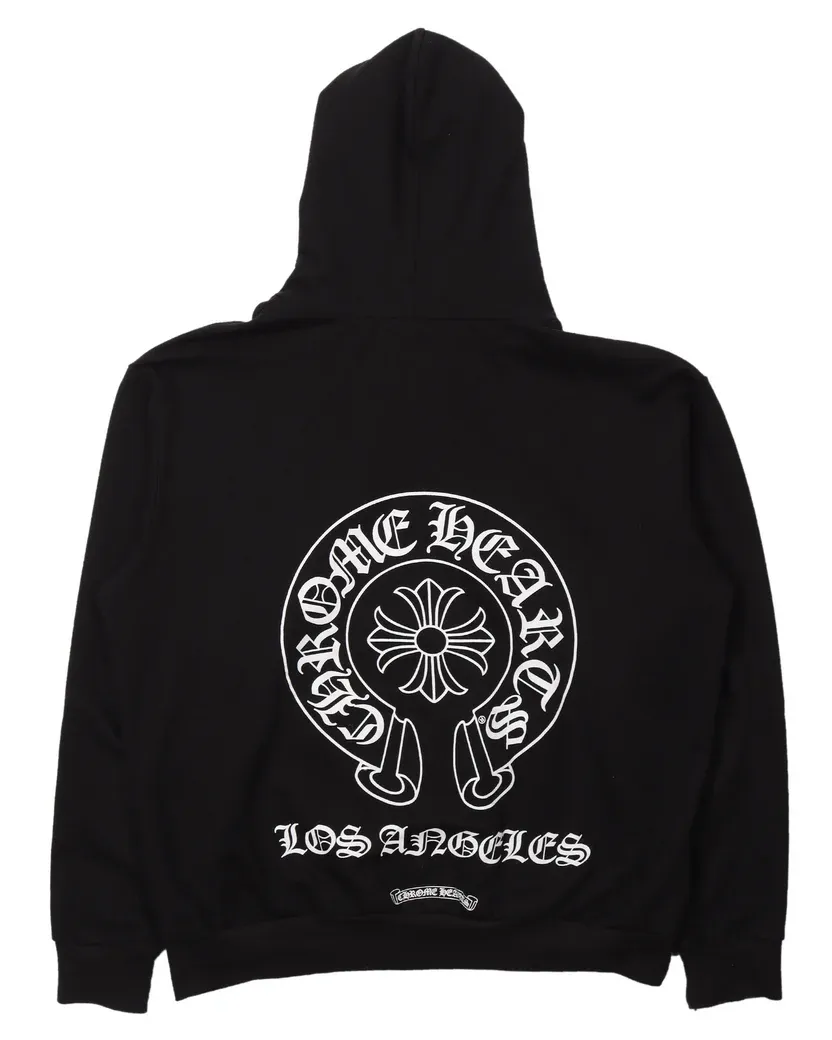 Elevate your streetwear collection with the Chrome Hearts Los Angeles Horseshoe Logo Zip-Up Hoodie. This premium hoodie effortlessly blends iconic design with unparalleled comfort, making it a must-have for fans of bold, edgy fashion.