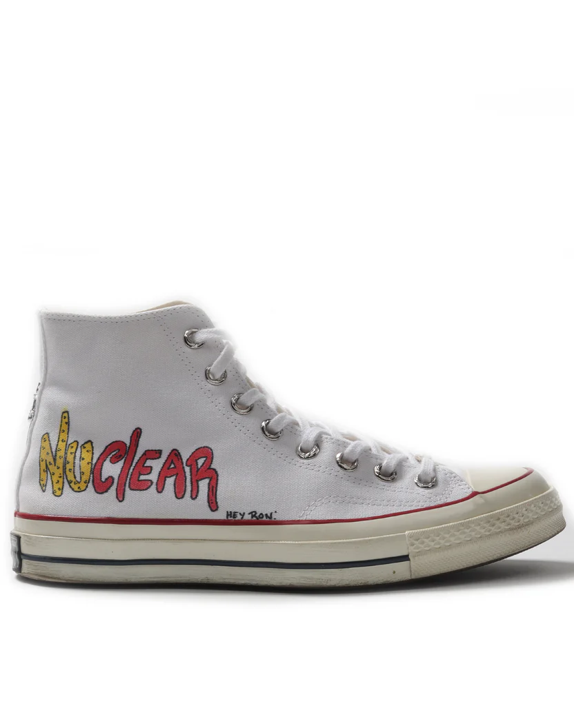 Elevate your sneaker game with the Chrome Hearts Matty Boy All-Star High-Top Converse—a striking blend of luxury, art, and streetwear. This limited-edition collaboration between Chrome Hearts and Converse features a bold high-top design, crafted with premium materials and adorned with exclusive Matty Boy artwork. The signature cross patch, along with the distinctive graphics by Matty Boy, gives these sneakers a unique edge, making them a must-have for sneaker enthusiasts and fashion-forward individuals alike.