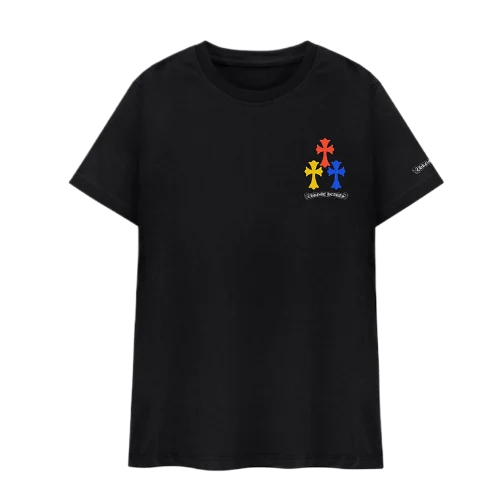 - Multicolor Horseshoe Logo: The standout feature of this t-shirt is the multicolor Chrome Hearts Horseshoe logo across the chest. The combination of vivid colors adds a fresh and dynamic twist to the traditional Chrome Hearts design, making the logo pop with energy and style.