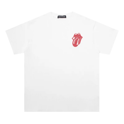 - Bold Graphic Design: The t-shirt features eye-catching, multi-layered graphic prints, showcasing both Chrome Hearts’ and Rolling Stone’s logos and motifs, making it a standout piece for any fashion enthusiast or music lover.