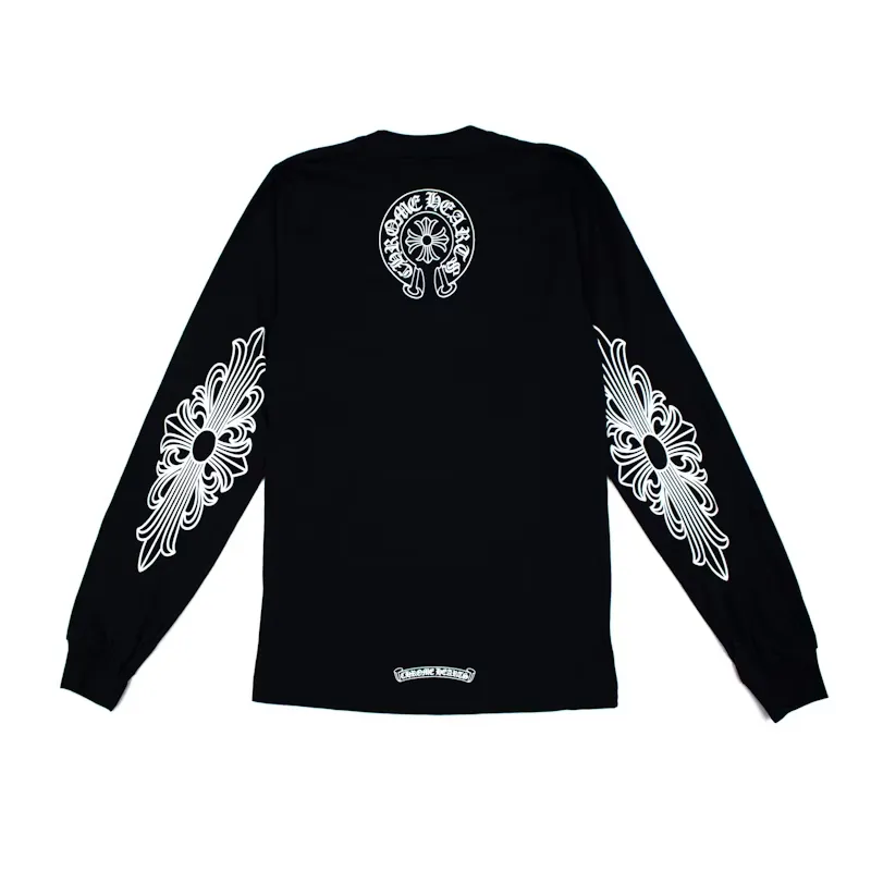 Upgrade your wardrobe with the bold and iconic Chrome Hearts Neck Logo Floral Cross Long-Sleeve T-Shirt. Designed for those who value premium quality and standout style, this black long-sleeve tee is a true statement piece.