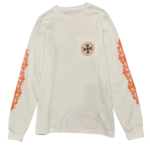 Chrome Hearts Orange Maltese Cross White Long Sleeve T-Shirt