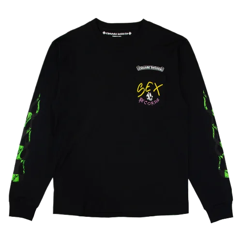 - Sex Records Graphic: Features a bold Sex Records logo design, a nod to the punk and rock-inspired roots of Chrome Hearts, delivering an edgy and unique look.