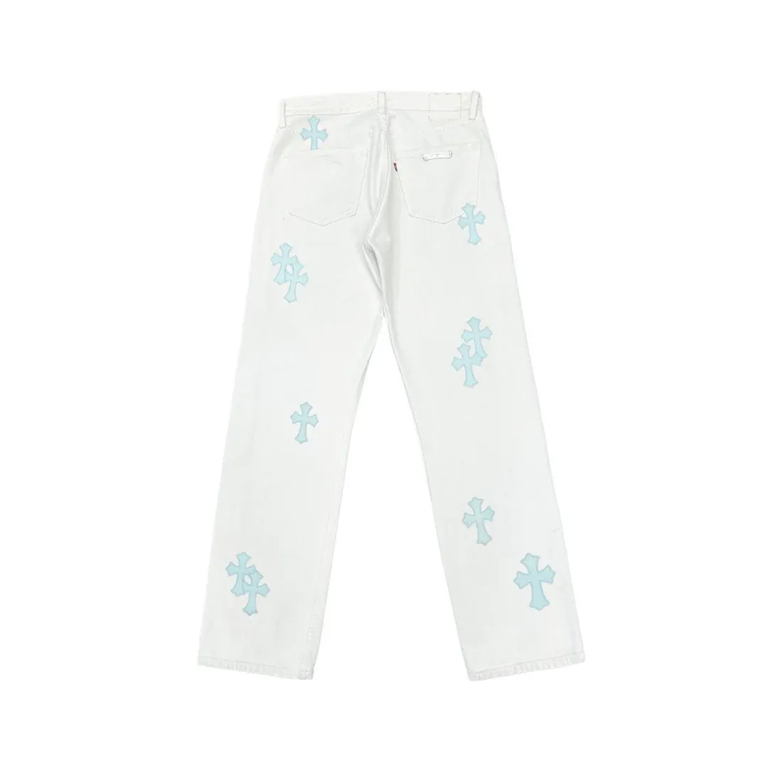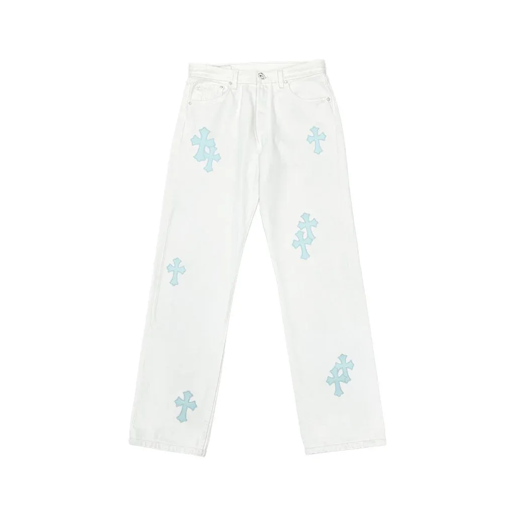 Chrome Hearts St Barth Baby Blue Cross Patch White Jeans