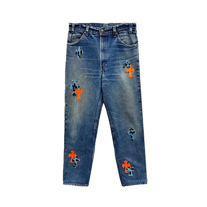Chrome Hearts Stb Exclusive Leopard Print Orange Cross Jeans