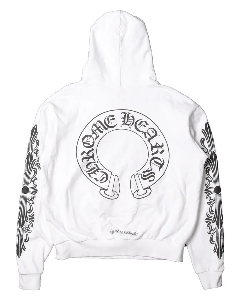 Elevate your streetwear collection with the Chrome Hearts White Horseshoe Logo Hoodie. Crafted from premium-quality cotton, this hoodie offers exceptional comfort and durability, making it a perfect addition to your wardrobe.
