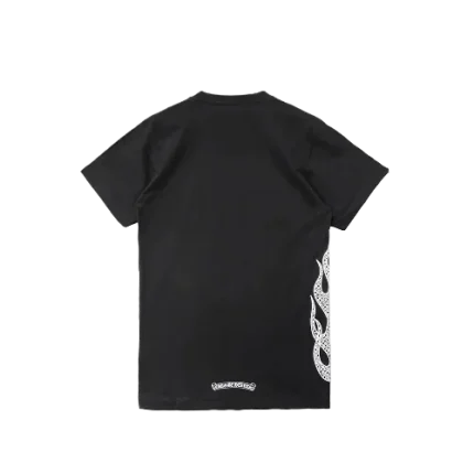 The Chrome Hearts CH Cross Flame Short Sleeve T-Shirt is a bold and eye-catching piece that fuses the brand’s signature