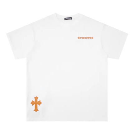 The Chrome Hearts 3 to 4 Embroidery Color Logo Orange T-Shirt brings vibrant color and luxury together, featuring a bold