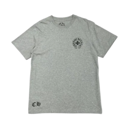 The Chrome Hearts Grey Horseshoe T-Shirt is a refined yet bold streetwear piece that embodies the brand’s signature high-end style