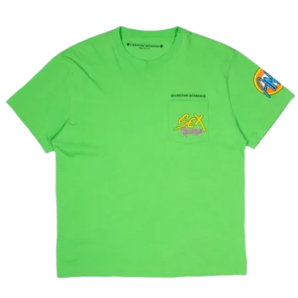 The Chrome Hearts Green Sex Records T-Shirt is a bold, streetwear statement piece that combines the brand’s signature luxury with