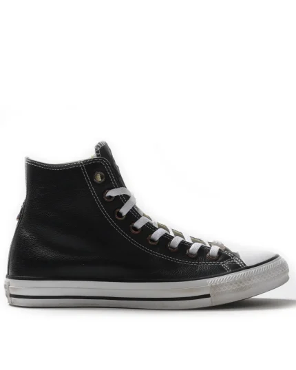 The Chrome Hearts Embellished Leather Chuck Taylor Converse are a limited-edition collaboration that merges Converse’s classic Chuck Taylor design with