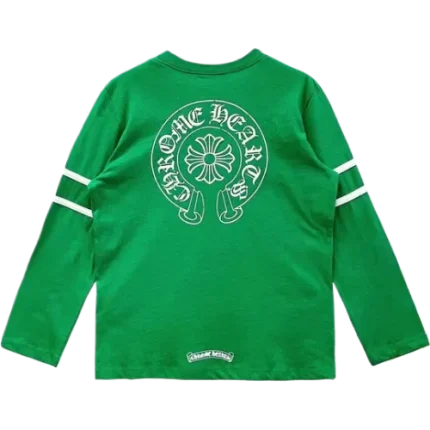 The Chrome Hearts 33 Horseshoe Logo Green Long Sleeves Tee is a bold and exclusive piece that combines the brandβs