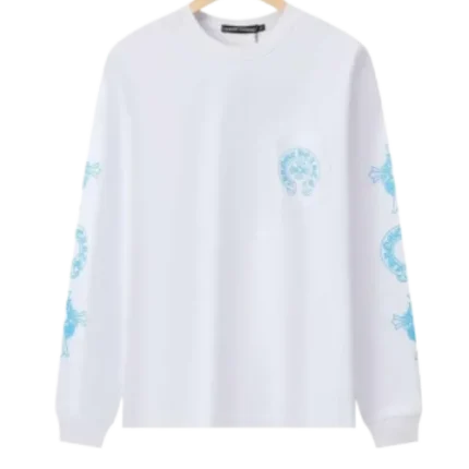 The Chrome Hearts Blue Cross Floral Sleeve Long Sleeve T-Shirt is a striking piece that combines bold imagery with the