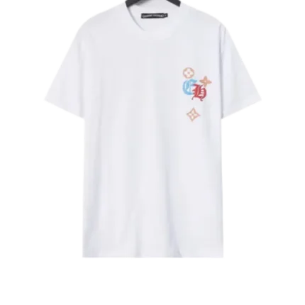 The Chrome Hearts Cross Louis Vuitton Logo T-Shirt in White is a bold and exclusive piece that merges the iconic