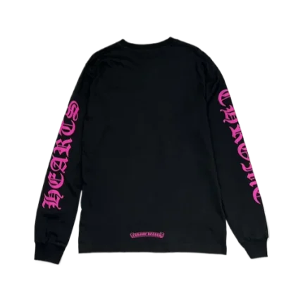 The Chrome Hearts Purple Neck Logo Long Sleeve Black Tee is a premium, streetwear-inspired garment that combines luxury with bold