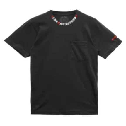 The Chrome Hearts Rolling Stone Tongue Scroll Short Sleeve Tee blends rock ‘n’ roll iconography with high-end streetwear, offering a