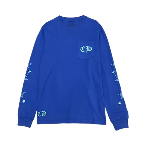 The Stylish Chrome Hearts Stars Blue Long Sleeve T-Shirt is a must-have for anyone looking to elevate their streetwear style with a luxurious and bold twist. Featuring the iconic star design and premium materials, it’s a versatile piece that adds a pop of color and exclusivity to any wardrobe.